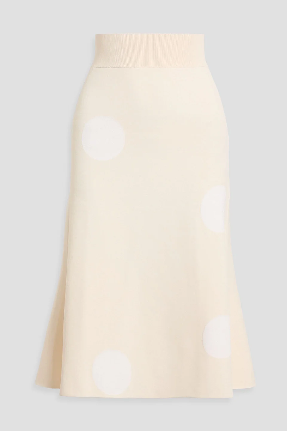 Skirt polka-dot jacquard-knit ribbed trims fluted hem slips on mid-weight knit hand wash or dry clean made in italy 77% Viscose 16% Polyester 5% Polyamide 2% Elastane Product Code 46376663163045813