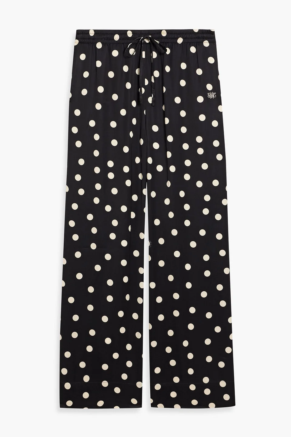 Straight-leg pants polka-dot satin embroidered logo side slit pockets elasticated drawstring waist high-rise cut pull on mid-weight, non-stretchy fabric dry clean imported 100% Viscose Product Code 1647597333129269