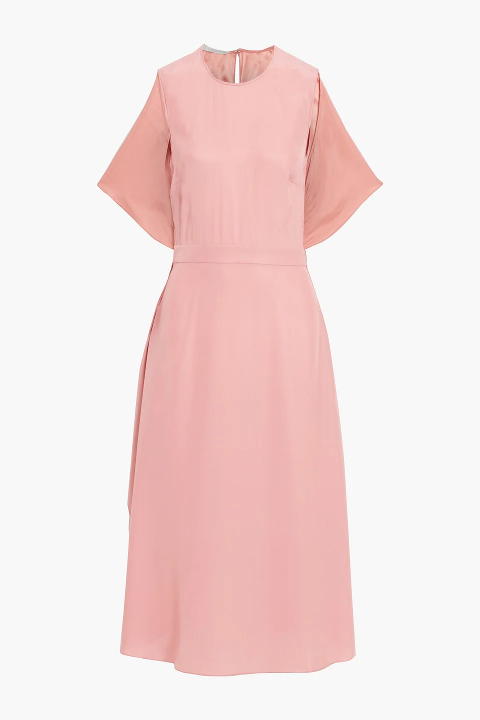 Dress silk-satin draped cape-effect hook-fastening keyhole at back concealed snap, hook and zip fastening at side non-stretchy fabric mid-weight fabric dry clean imported 100% Textile fibers Product Code 1647597284217251