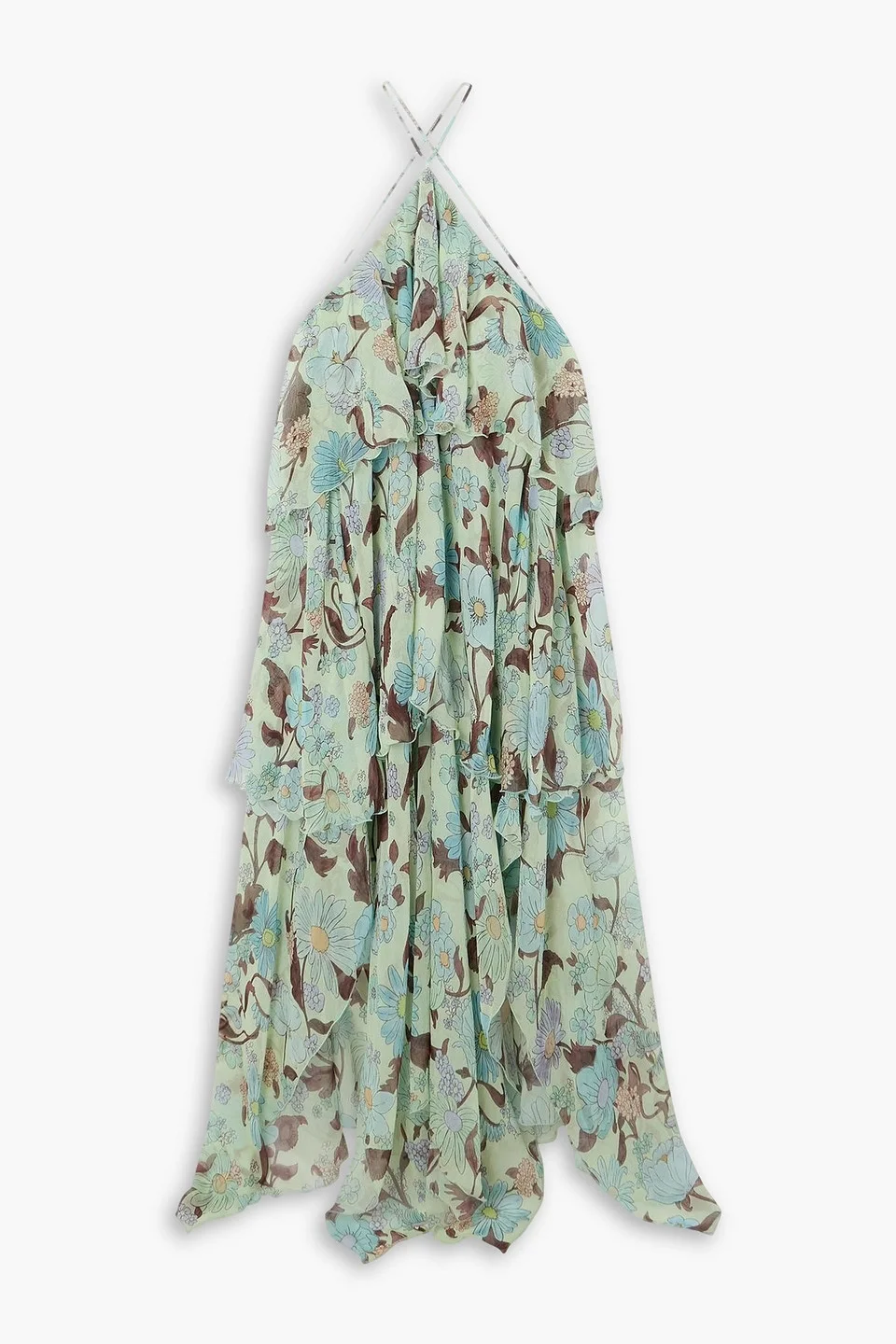 Dress floral-print silk-chiffon tiered asymmetric hem ties at back lightweight, non-stretchy fabric dry clean imported We love the florals on Stella McCartney’s dress. Made from silk-chiffon, it has tiered, ruffled panels that form an ethereal drape. The halter neckline calls for your favorite drop earrings. 100% Silk Product Code 46376663162956594