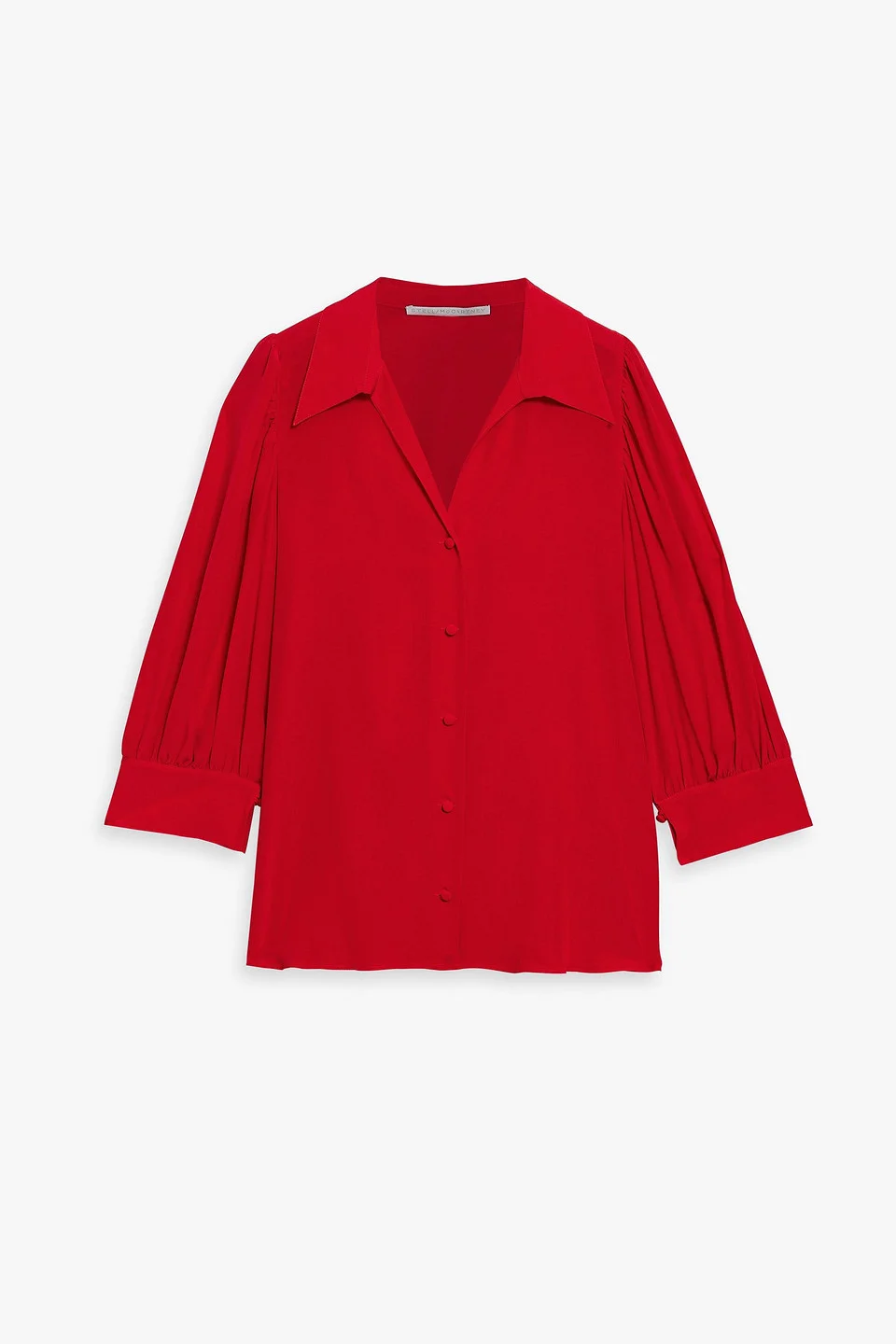 Blouse silk crepe de chine gathered sleeves buttoned cuffs button fastenings through front non-stretchy fabric lightweight fabric dry clean imported 100% Silk Product Code 1647597285056735