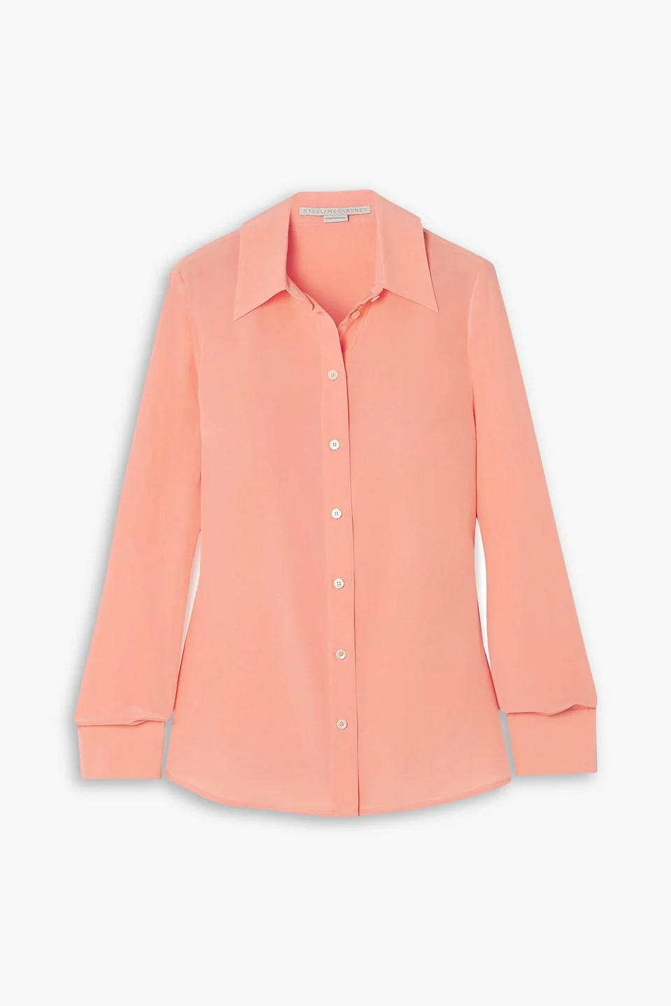 Shirt silk crepe de chine mother-of-pearl buttons buttoned cuffs side slits button fastenings through front dry clean mid-weight, non-stretchy fabric imported 100% Silk Product Code 1647597325333520