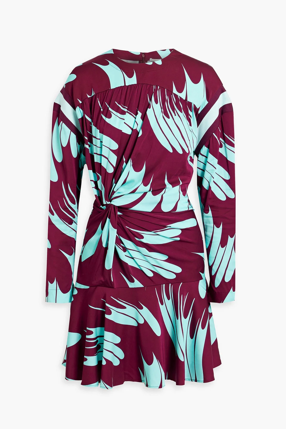 Dress printed crepe knitted trims twisted fluted hem concealed zip fastening along back slightly stretchy fabric mid-weight fabric dry clean imported 98% Polyamide 2% Elastane Product Code 1647597321688386
