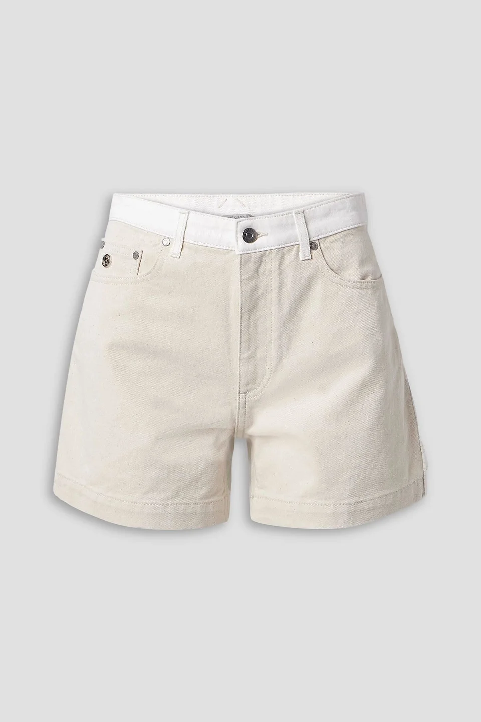 Shorts two-tone denim belt loops high-rise cut five pockets button and concealed zip fastening at front mid-weight, non-stretchy fabric machine wash made in italy 100% Cotton Product Code 1647597325334413