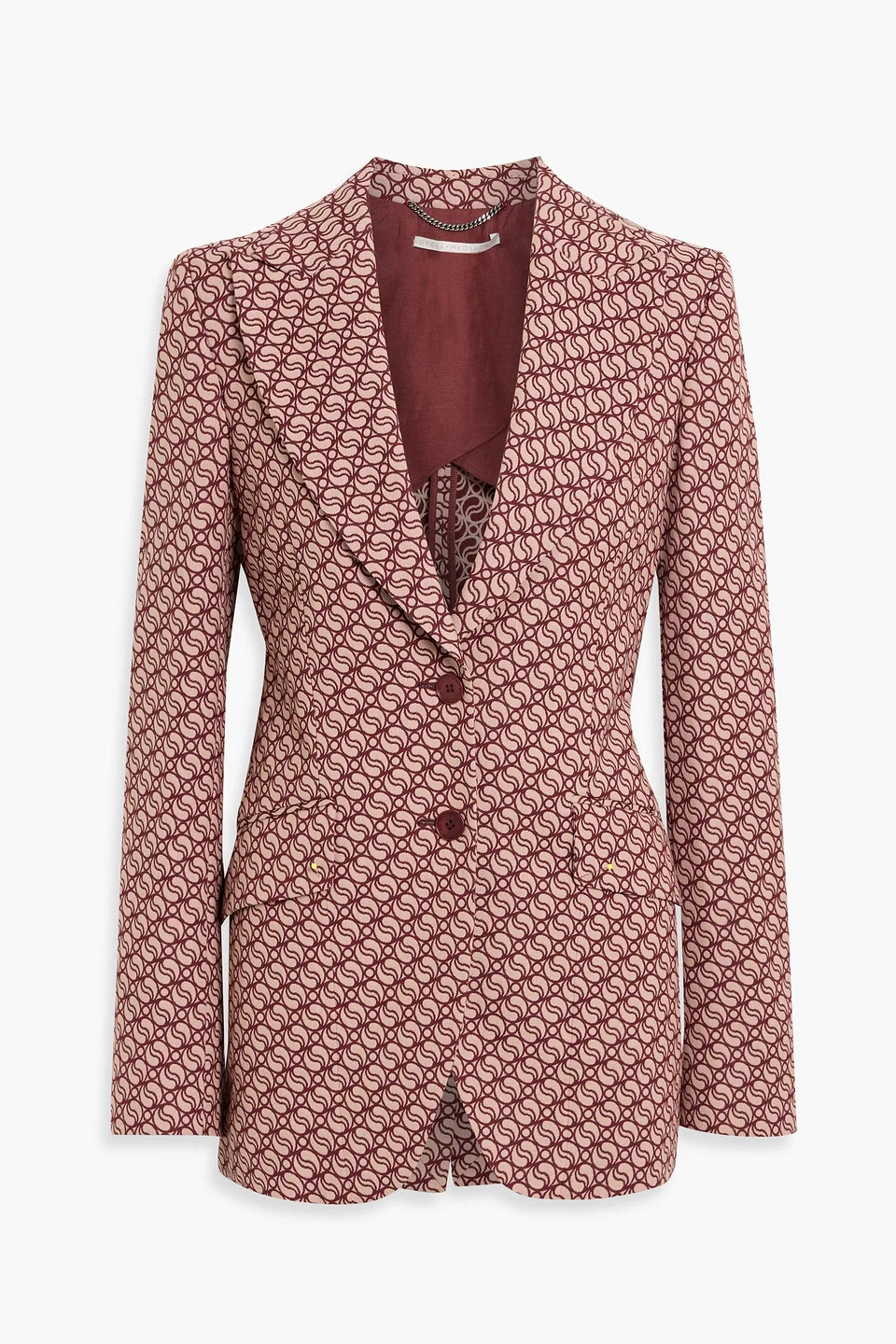 Blazer jacquard wool-blend shoulder pads buttoned cuffs breast pocket front flap pockets button fastenings through front partially lined back vent mid-weight, slightly stretchy fabric dry clean imported 58% Wool 37% Cotton 4% Polyamide 1% Elastane Product Code 46376663163045310