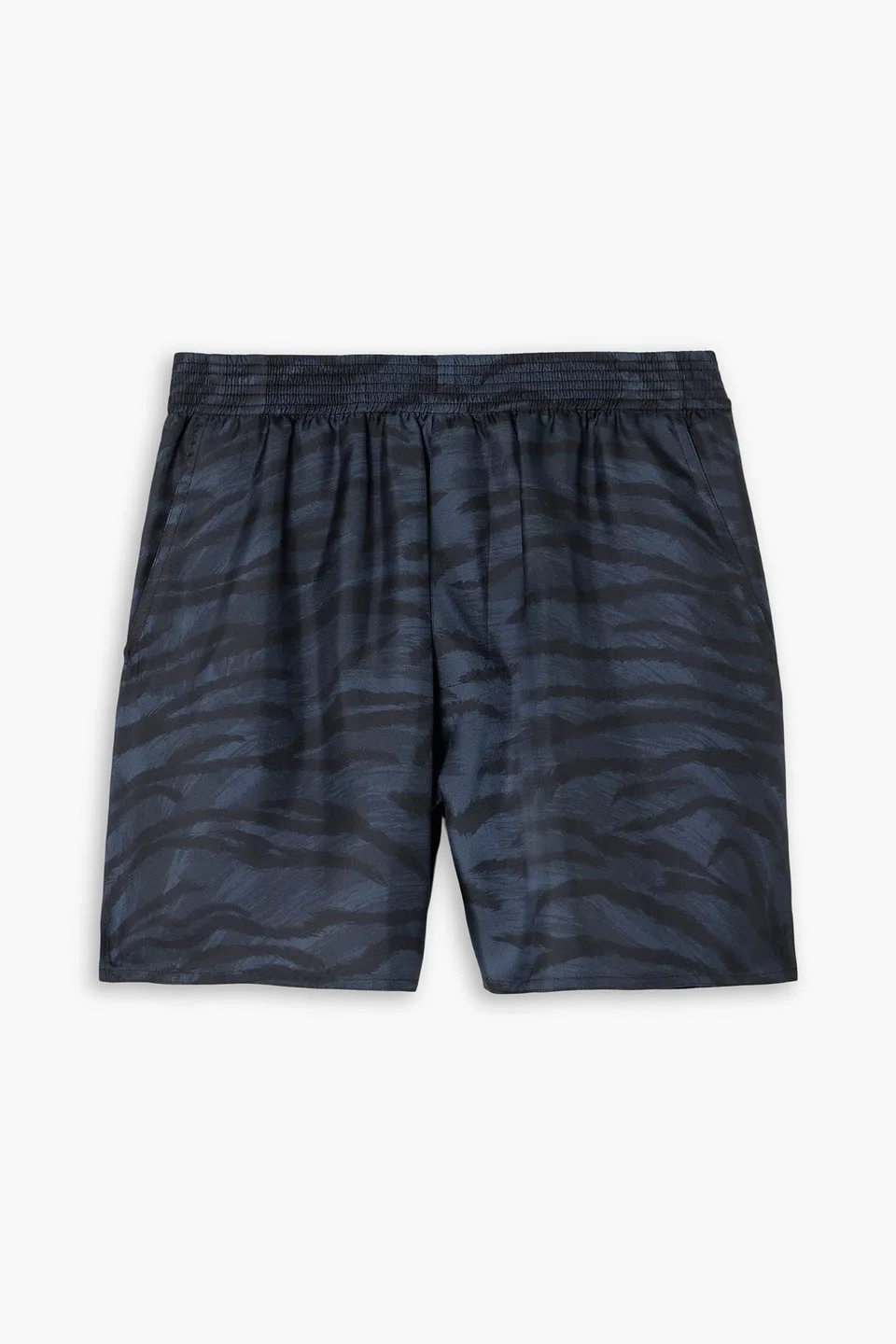 Shorts zebra-print silk elasticated waist high-rise cut side slant pockets back patch pocket side slits pull on lightweight, non-stretchy fabric dry clean imported 100% Silk Product Code 1647597337091140