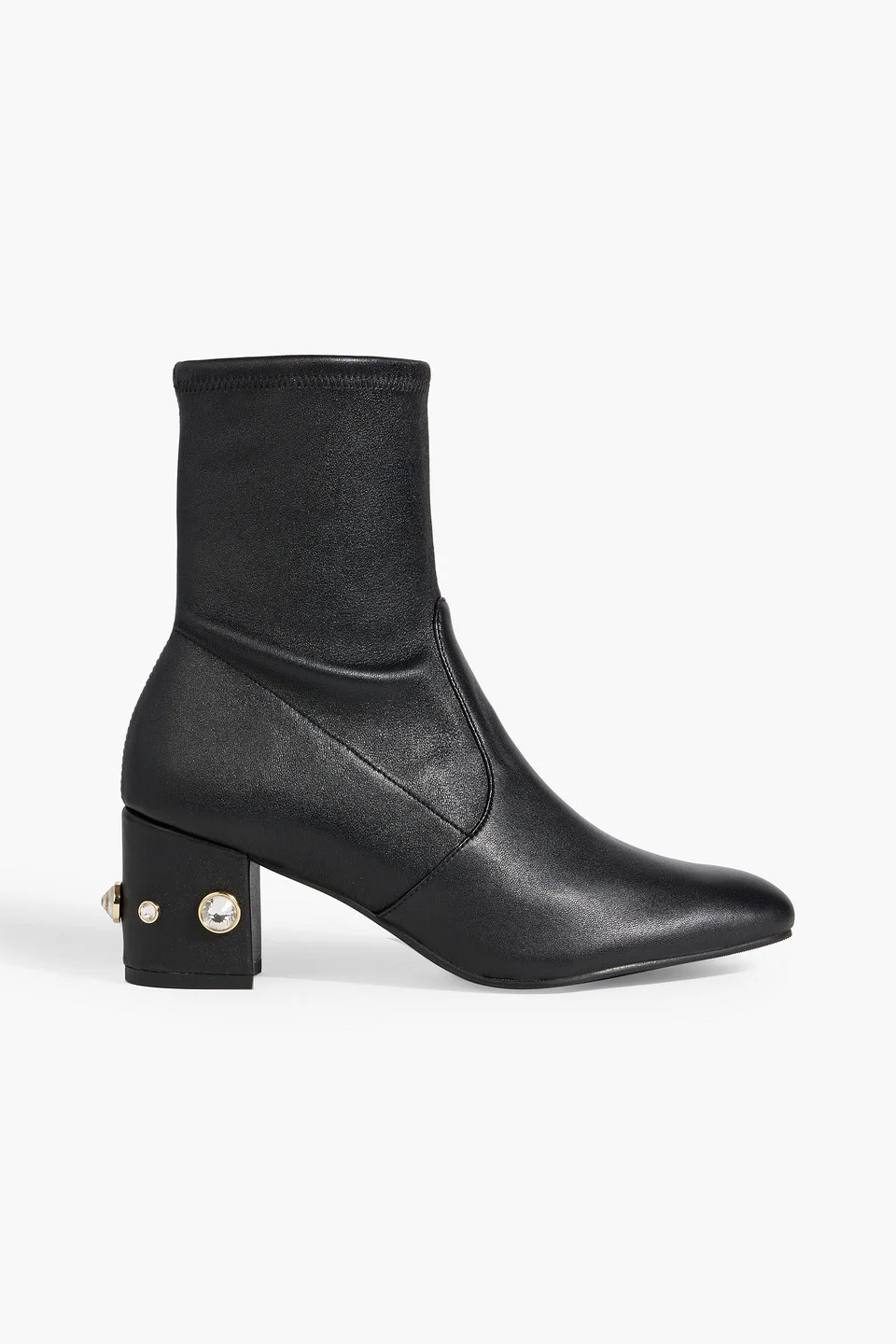 Ankle boots leather crystals block heel almond toe pull on rubber sole imported 100% Calf-skin leather Product Code 1647597351014703