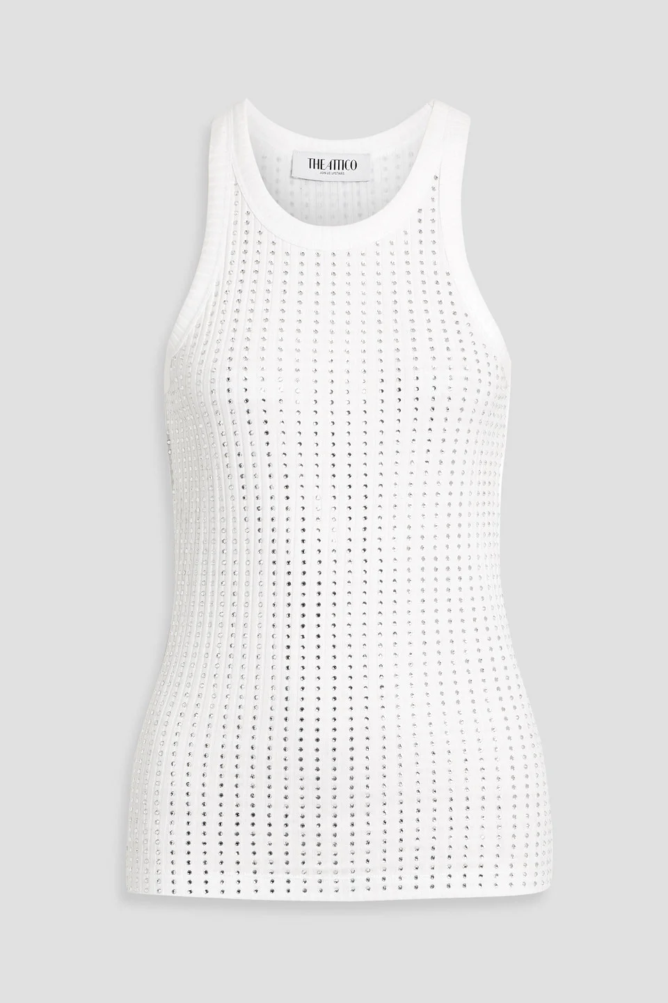 Crystal-embellished ribbed cotton tank