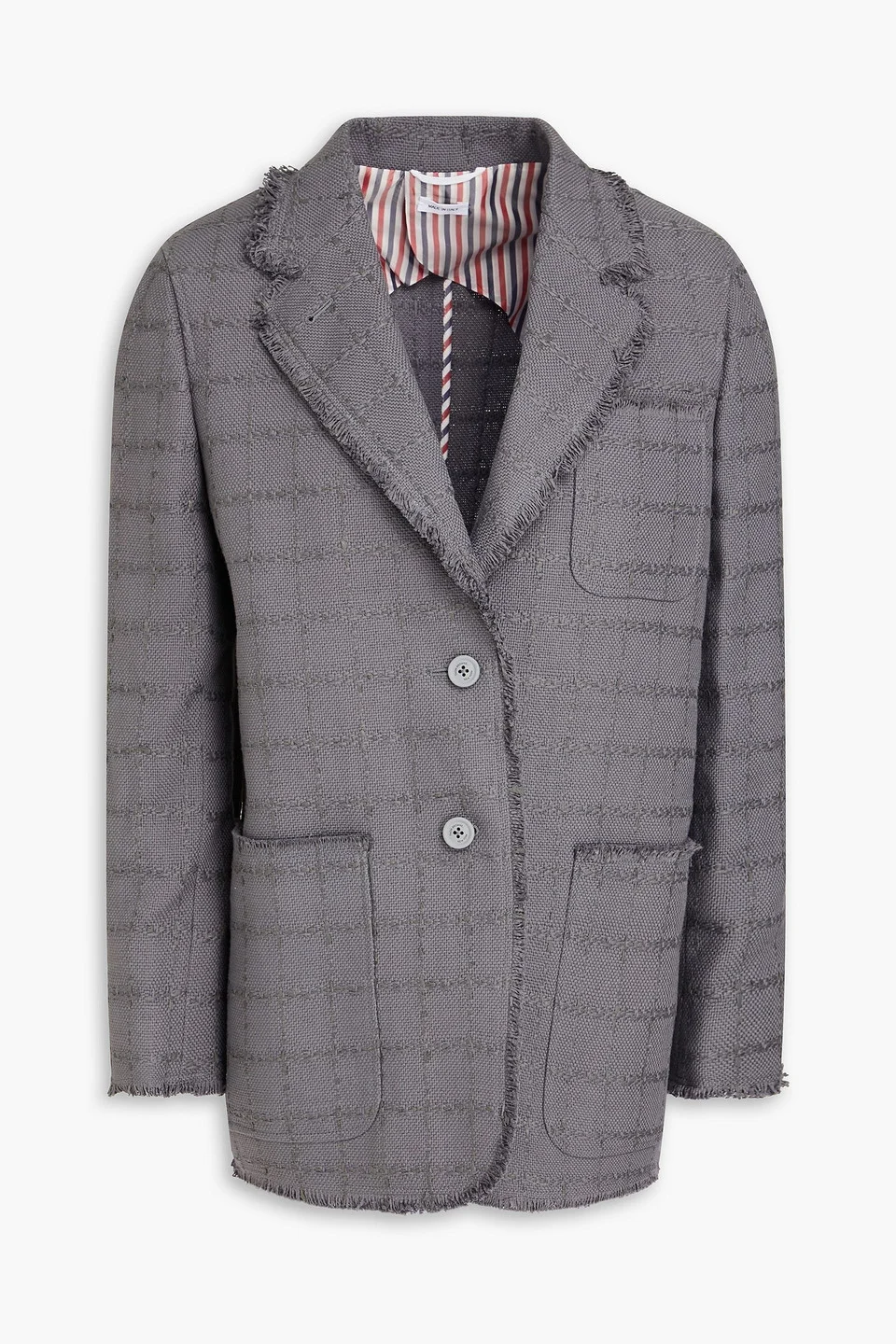 Blazer checked tweed cotton-blend shoulder pads fringed trims buttoned cuffs breast pocket two front patch pockets button fastenings through front partially lined back vent mid-weight, non-stretchy fabric dry clean made in italy 95% Cotton 3% Polyurethane 1% Polyamide 1% Wool Product Code 1647597350993538