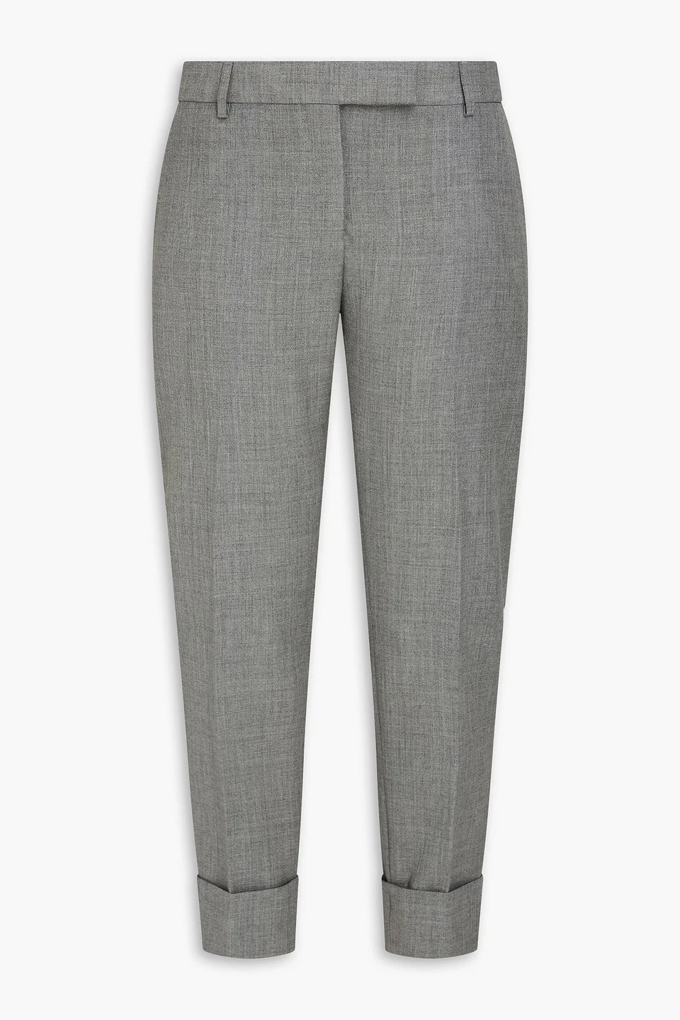 Tapered pants grain de poudre wool mother-of-pearl buttons cropped side slant pockets back welt pockets belt loops low-rise cut folded cuffs fully lined concealed hook, button and zip fastening at front mid-weight, non-stretchy fabric dry clean made in italy 100% Wool 0% Mother-of-pearl Product Code 46376663163089739