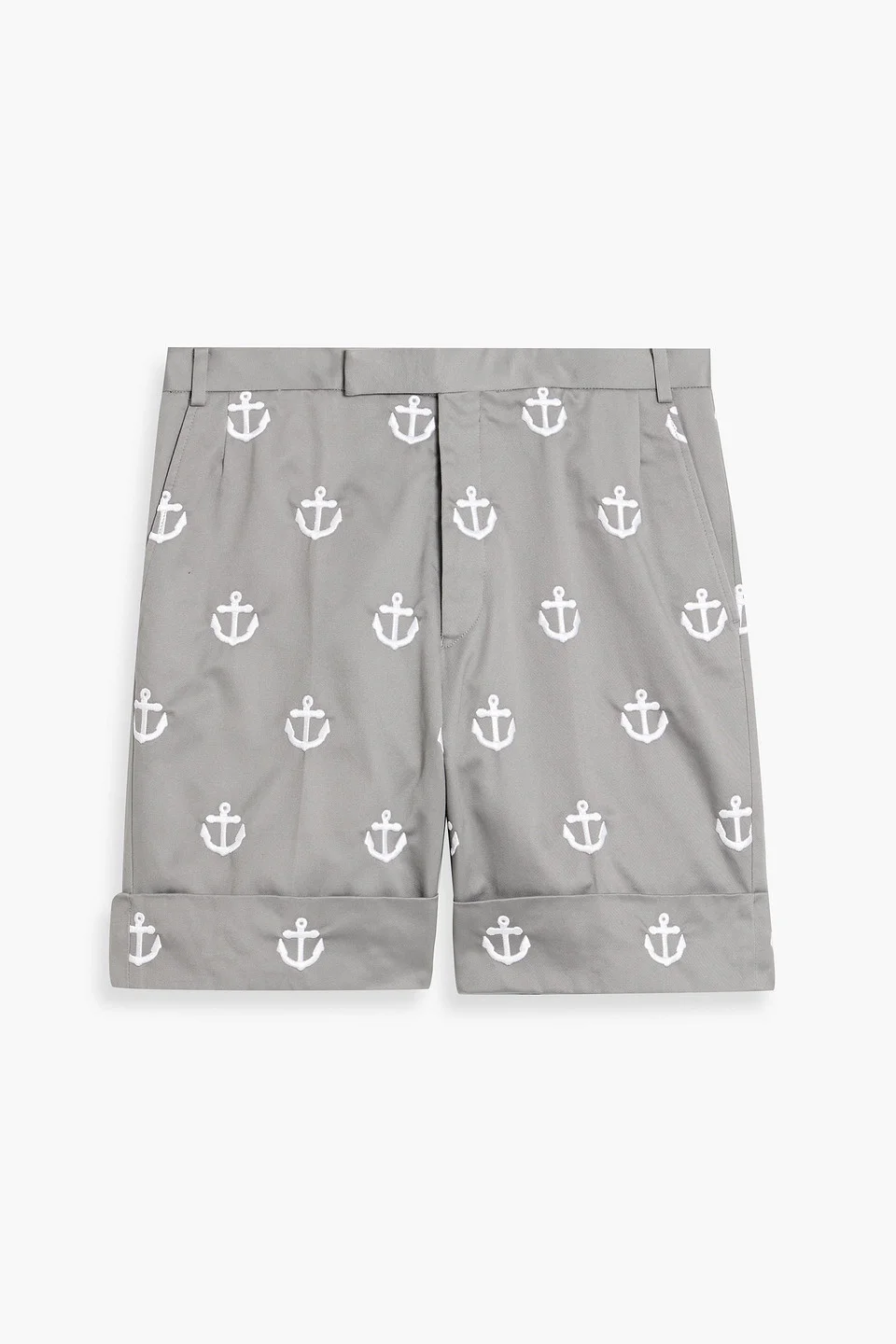 Shorts cotton-twill embroidered belt loops front slant pockets back welt pockets concealed hook and button fastenings along front mid-weight, non-stretchy fabric dry clean made in japan 100% Cotton Product Code 46376663163088937