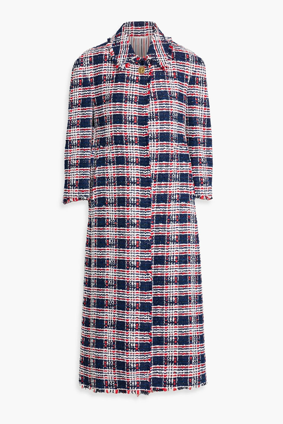 Coat checked tweed frayed trims buttoned cuffs front slit pockets dual back vents fully lined button fastening at front mid-weight, non-stretchy fabric dry clean made in japan 48% Polyester 31% Acrylic 14% Viscose 7% Wool Product Code 46376663163085850
