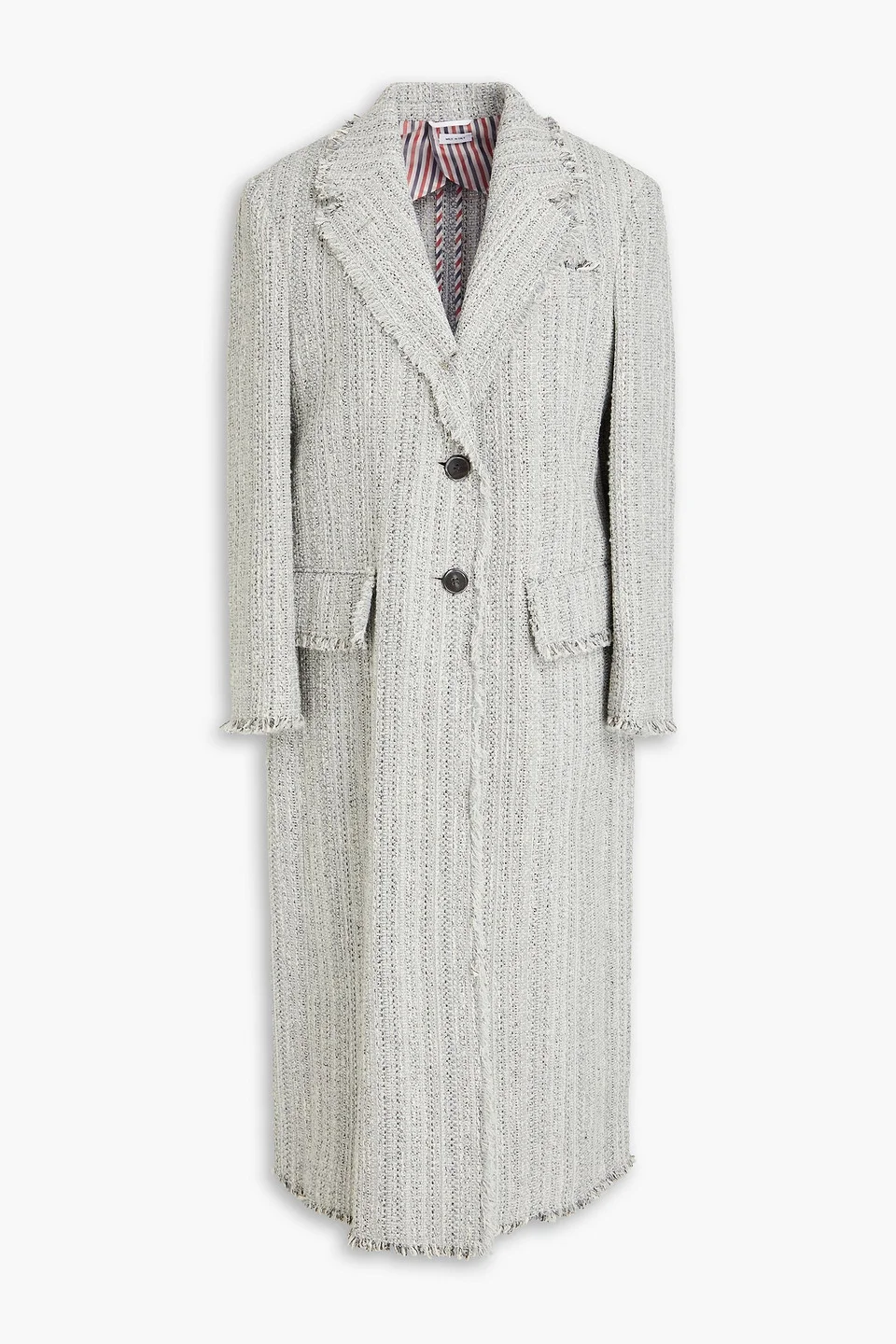 Coat tweed fringed trims button-detailed shoulder pads buttoned cuffs breast pocket two front flap pockets dual back vents partially lined button fastenings through front mid-weight, non-stretchy fabric dry clean made in italy 75% Synthetic fibers 13% Cotton 9% Wool 2% Mohair wool 1% Metallic fiber Product Code 1647597350953504