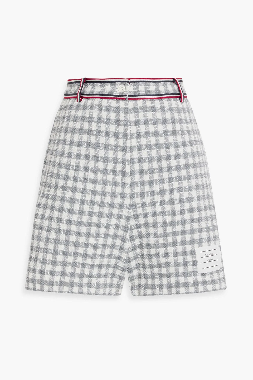 Shorts gingham boucle cotton-blend logo-appliqued mother-of-pearl buttons striped trims high-rise cut back patch pocket button and concealed zip fastening at front mid-weight, slightly stretchy fabric dry clean made in italy 91% Cotton 8% Polyamide 1% Elastane 0% Tectus Niloticus (farmed): Indonesia Product Code 46376663162850674