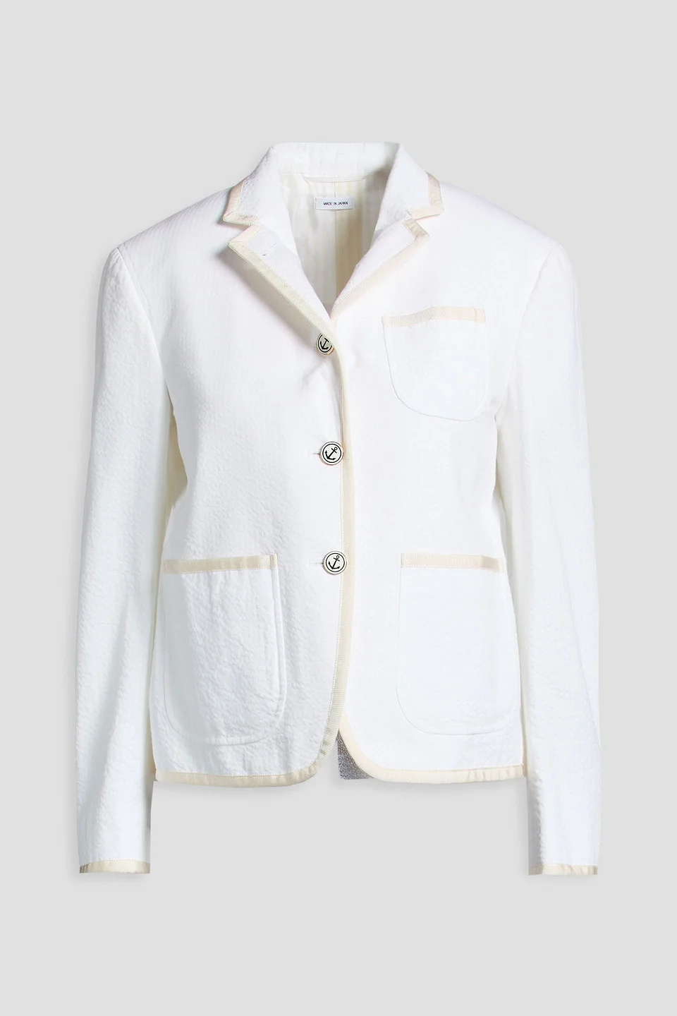 Blazer cotton-seersucker grosgrain trims breast pocket front patch pockets button fastenings through front fully lined mid-weight, non-stretchy fabric dry clean made in japan 100% Cotton Product Code 46376663163082608