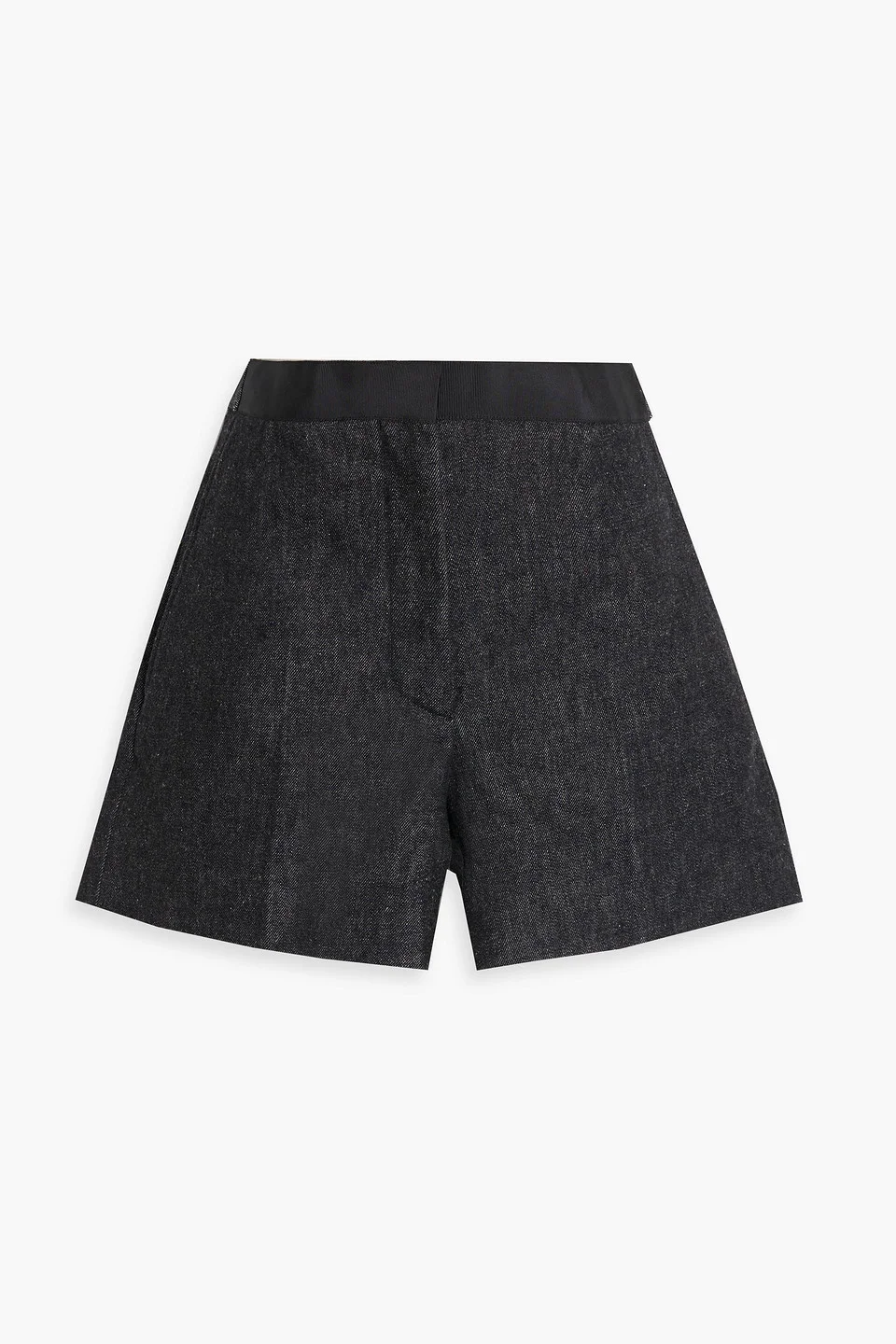 Shorts denim grosgrain trims buttoned waist tabs high-rise cut two front slant pockets two back welt pockets concealed hook, button and zip fastening at front mid-weight, non-stretchy fabric dry clean made in italy 100% Cotton Product Code 46376663162866370
