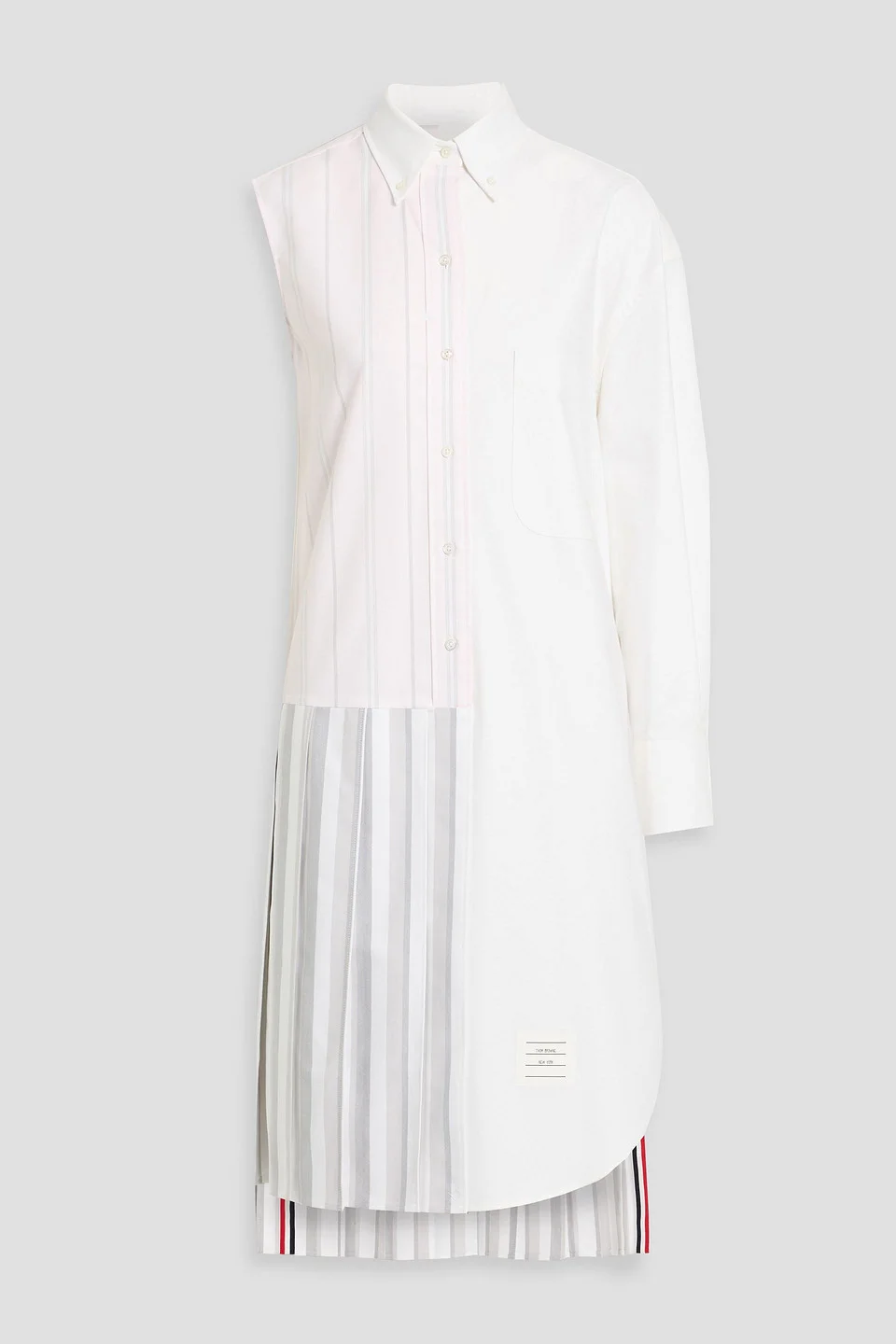 Shirt dress striped cotton-pique logo-appliqued asymmetric buttoned cuffs breast pocket button fastenings along front mid-weight, non-stretchy fabric dry clean made in italy 100% Cotton Product Code 46376663163084698