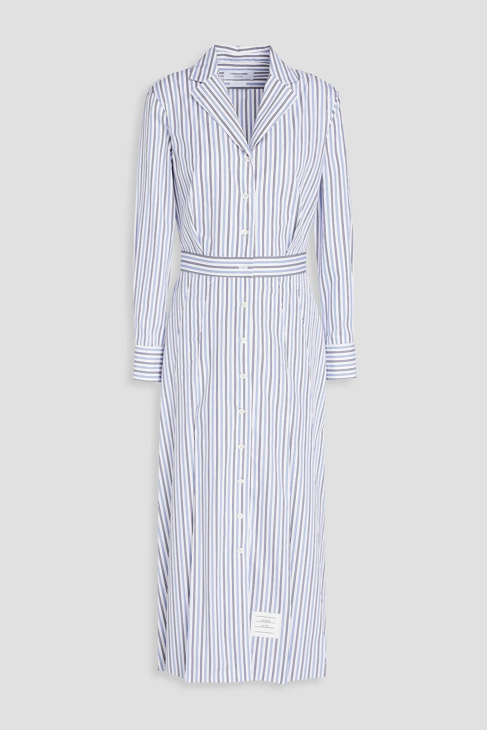 Shirt dress striped cotton-poplin logo-appliqued pleated buttoned cuffs button fastenings through front mid-weight, non-stretchy fabric dry clean made in italy 100% Cotton 0% Pinctada Maxima (farmed): Australia Product Code 1647597350159042