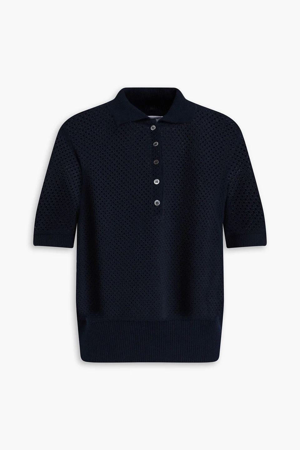 Pointelle-knit cashmere polo sweater