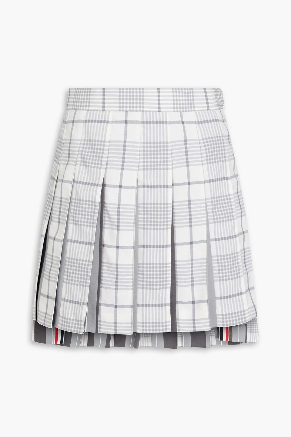 Poplin-paneled pleated Prince of Wales checked wool mini skirt