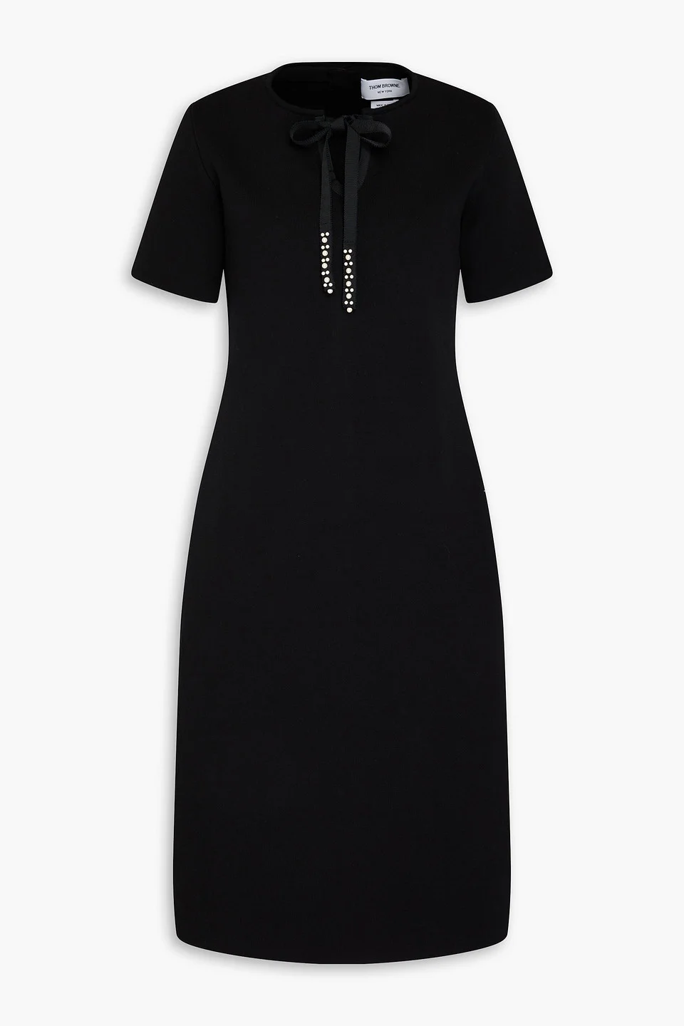 Dress stretch-knit faux pearl buttoned cuffs back vent concealed zip fastening along back tie-fastening keyhole at front mid-weight knit machine wash made in italy 95% Cotton 4% Polyamide 1% Elastane Product Code 46376663162849959