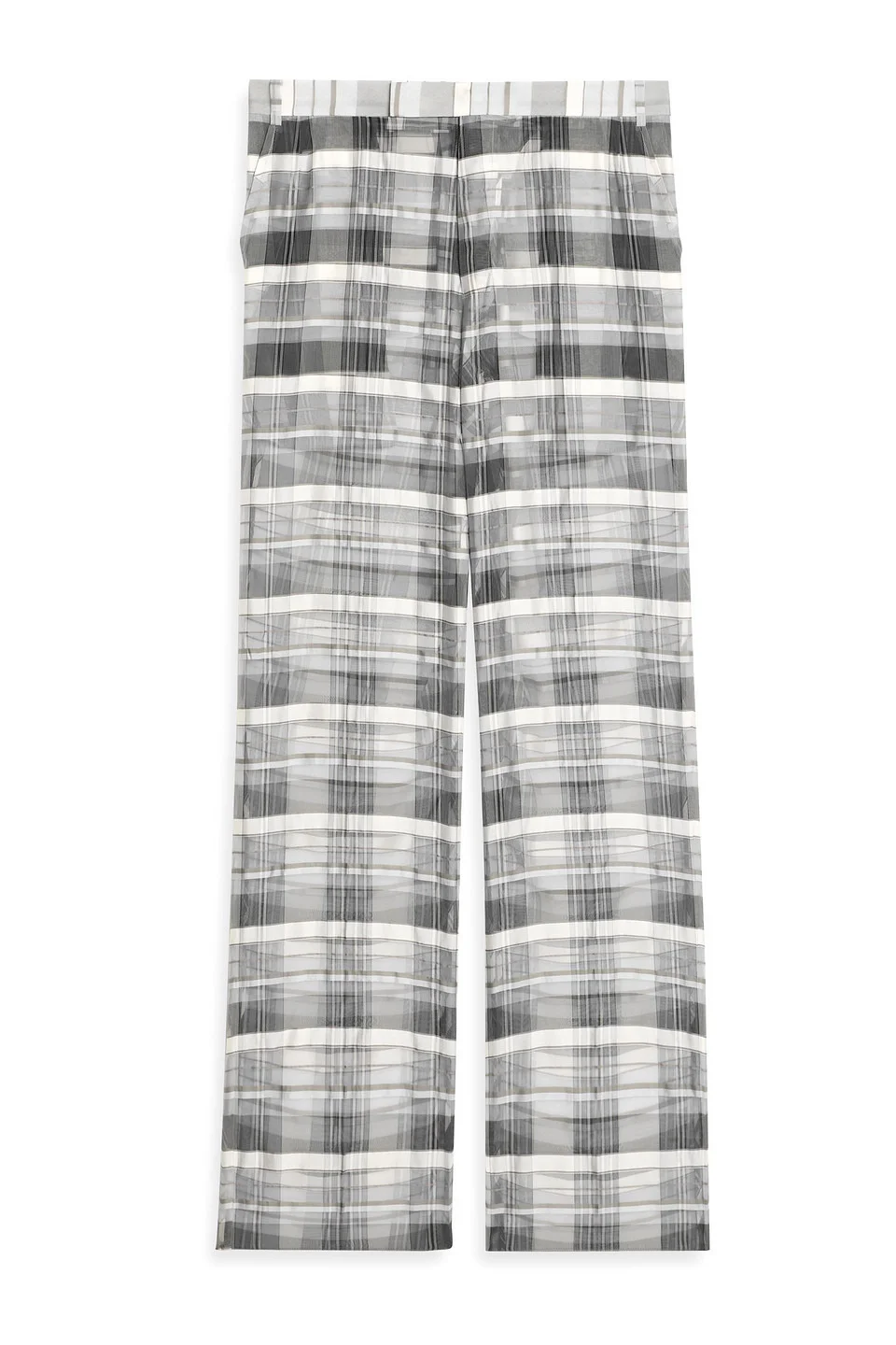 Pants checked silk-organza front slant pockets back welt pockets concealed hook and button fastenings along front lightweight, non-stretchy sheer fabric dry clean made in japan 100% Silk Product Code 46376663163089080