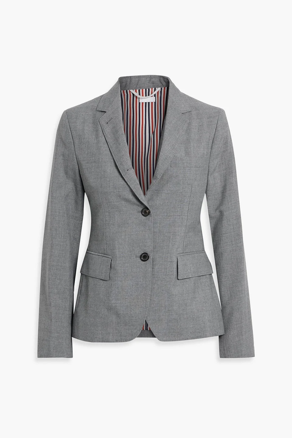 Blazer wool-blend shoulder pads buttoned cuffs breast pocket two front flap pockets button fastenings through front fully lined dual back vents mid-weight, non-stretchy fabric dry clean made in italy 50% Polyester 50% Wool Product Code 46376663162864960