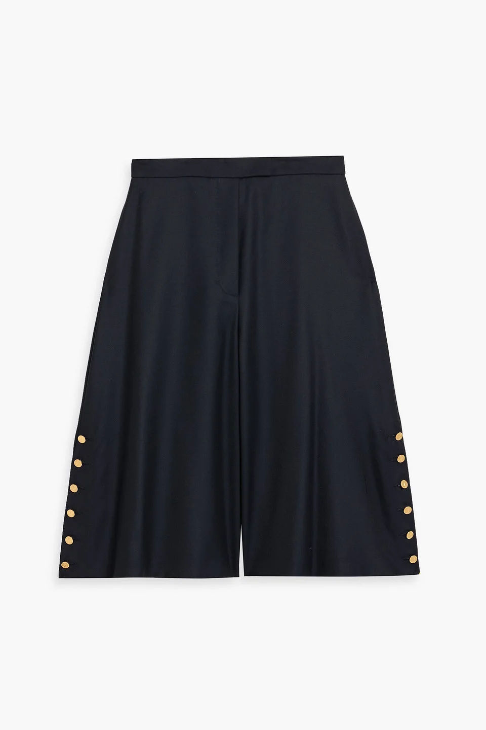 Culottes wool-twill button-detailed front slant pockets back welt pockets high-rise cut concealed button fastenings along front mid-weight, non-stretchy fabric dry clean made in italy 100% Wool Product Code 46376663163084797