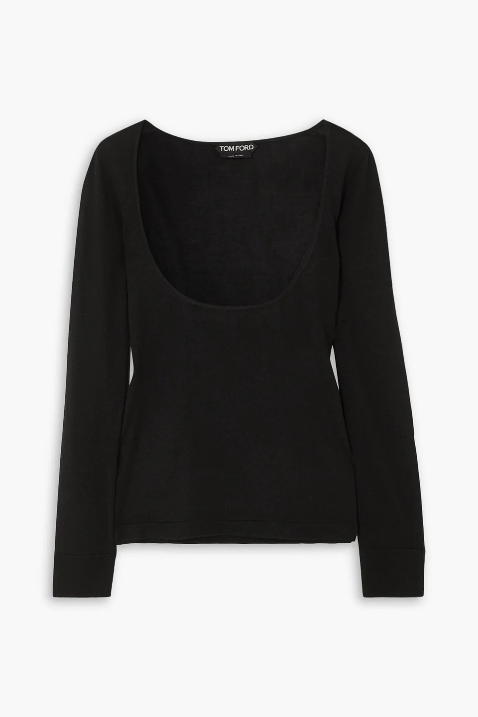 Top cashmere and silk-blend slips on lightweight knit dry clean made in italy Designed to expose your bra or bustier underneath, this low scooped top from TOM FORD is made from cashmere and silk-blend and has long sleeves. Style it with black wide-leg pants (and of course a seriously smoky eye). 70% Cashmere 30% Silk Product Code 1647597346248041