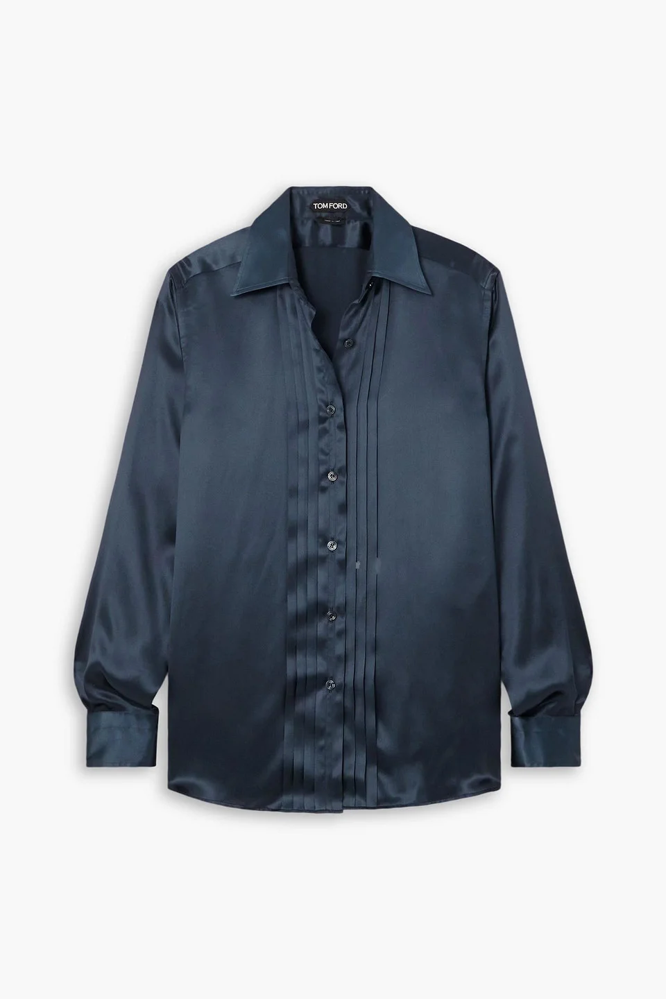 Shirt silk mother-of-pearl buttons pleated buttoned cuffs side slits button fastenings through front dry clean mid-weight, non-stretchy fabric made in italy 100% Silk 0% Pinctada Maxima (farmed): Indonesia Product Code 46376663163022623