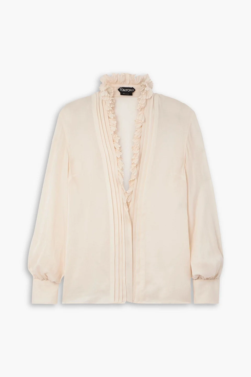 Blouse silk-georgette mother-of-pearl buttons ruffled pintucked buttoned cuffs concealed button fastenings through front lightweight, non-stretchy fabric dry clean made in italy 100% Silk 0% Pinctada Maxima (farmed): Indonesia Product Code 46376663163024409