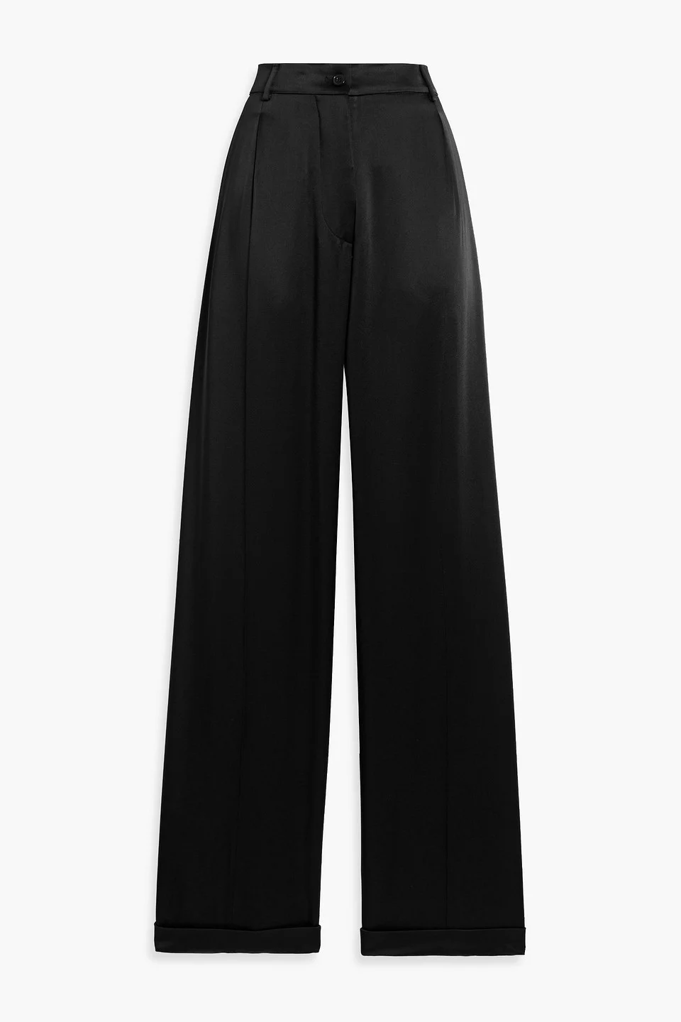 Straight-leg pants satin pleated side slit pockets back welt pockets belt loops high-rise cut folded cuffs button and concealed zip fastening at front mid-weight, non-stretchy fabric dry clean made in italy 65% Acetate 35% Viscose Product Code 46376663162918780