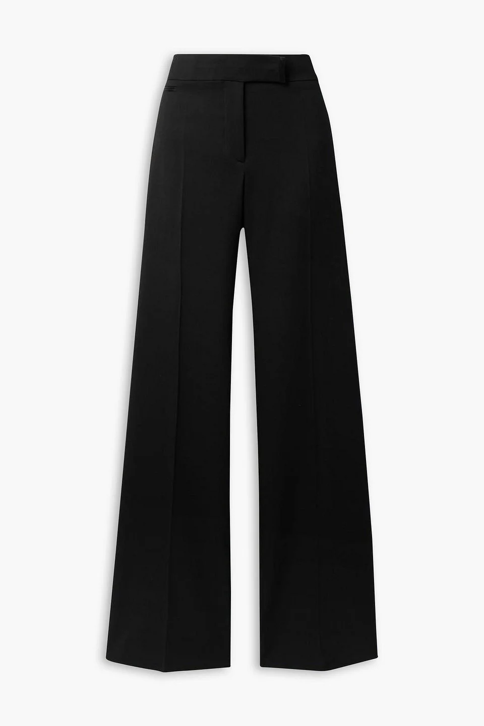 Wide-leg pants grain de poudre wool satin trims pressed creases two back welt pockets high-rise cut concealed hook, button and zip fastening at front mid-weight, non-stretchy fabric dry clean made in italy TOM FORD's pants are trimmed with lustrous silk-satin along the sides for a tuxedo-inspired feel. Tailored from grain de poudre wool, they sit high on the waist and have flowy, wide legs with pressed creases. Wear it with the coordinating blazer for a chic evening look. 100% Virgin Wool Product Code 1647597353913226