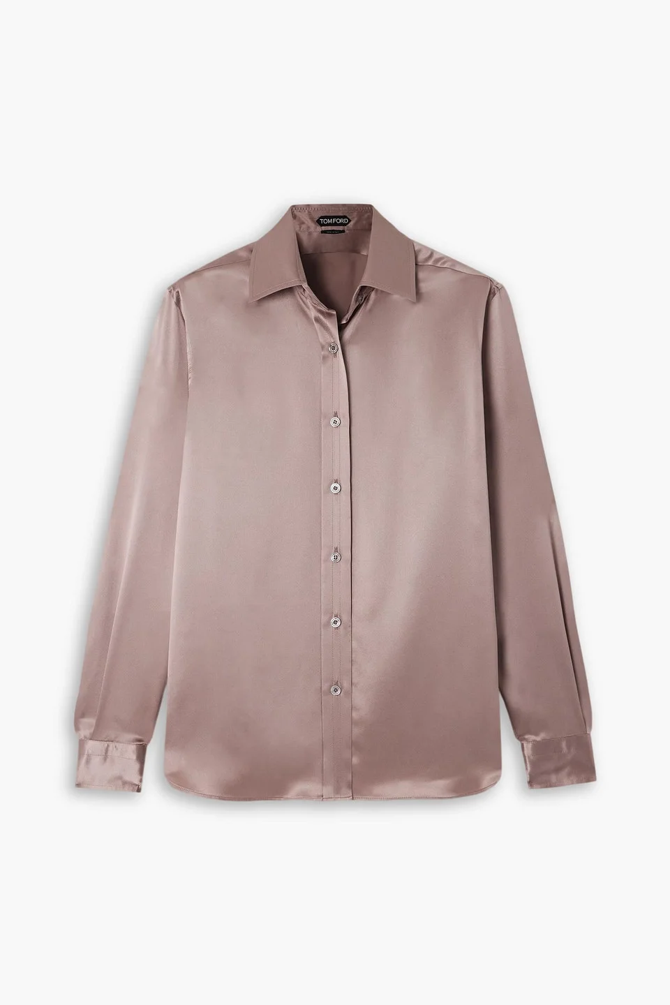 Shirt silk-charmeuse mother-of-pearl buttons buttoned cuffs button fastenings through front dry clean mid-weight, non-stretchy fabric made in italy 100% Silk 0% Pinctada Maxima (farmed): Indonesia Product Code 46376663163023496
