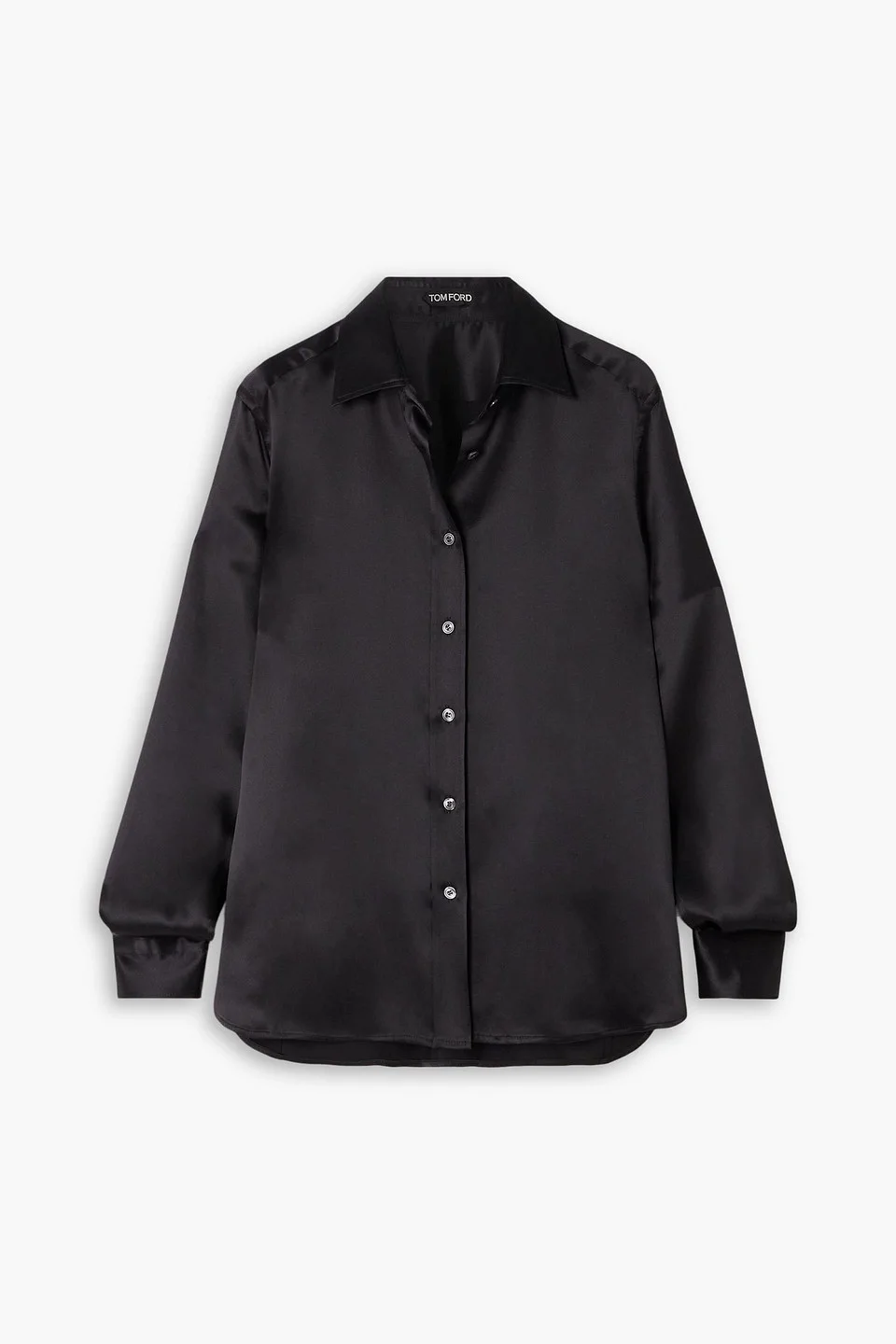 Shirt silk-satin mother-of-pearl buttons buttoned cuffs button fastenings through front dry clean mid-weight, non-stretchy fabric made in italy 100% Silk 0% Mother-of-pearl Product Code 46376663163026542