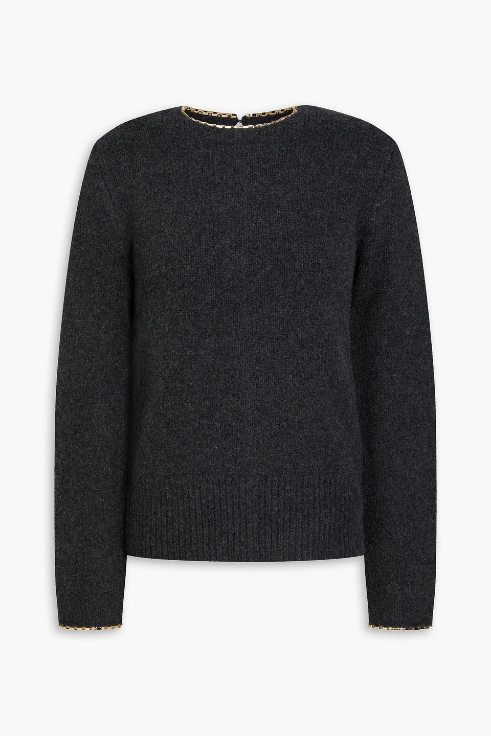 Chain-embellished mélange wool and cashmere-blend sweater
