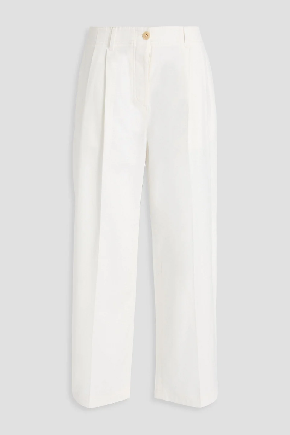 Straight-leg pants cotton-twill pleated back welt pockets side slit pockets belt loops high-rise cut partially concealed button fastenings along front mid-weight, non-stretchy fabric dry clean imported 100% Organic Cotton Product Code 46376663162942926