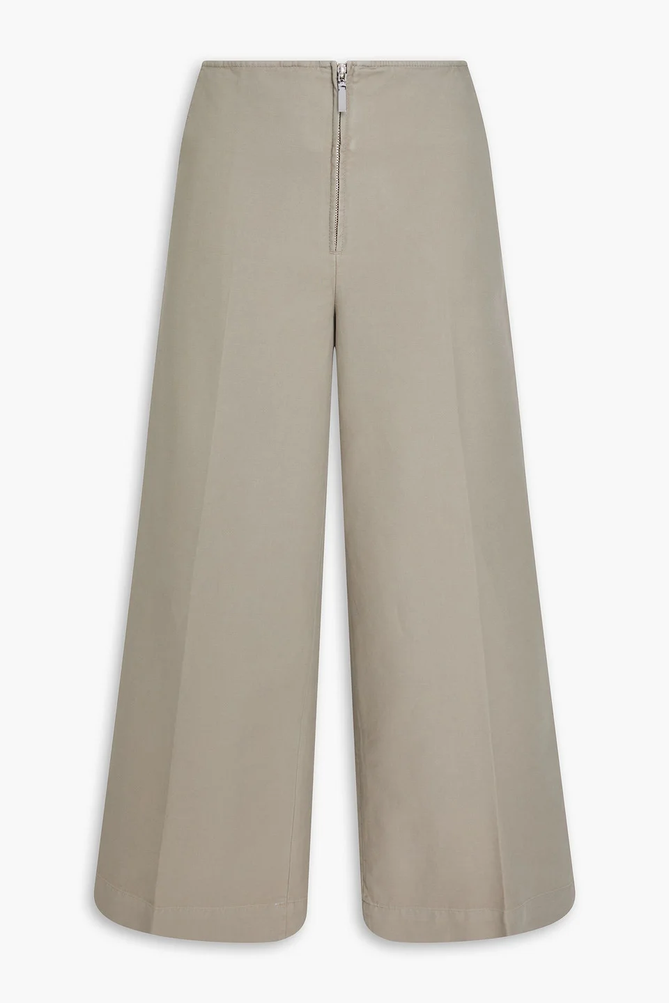 Wide-leg pants cotton-twill pressed creases side slant pockets back welt pockets high-rise cut concealed zip fastening along front mid-weight, non-stretchy fabric dry clean imported 100% Organic Cotton Product Code 46376663163031671