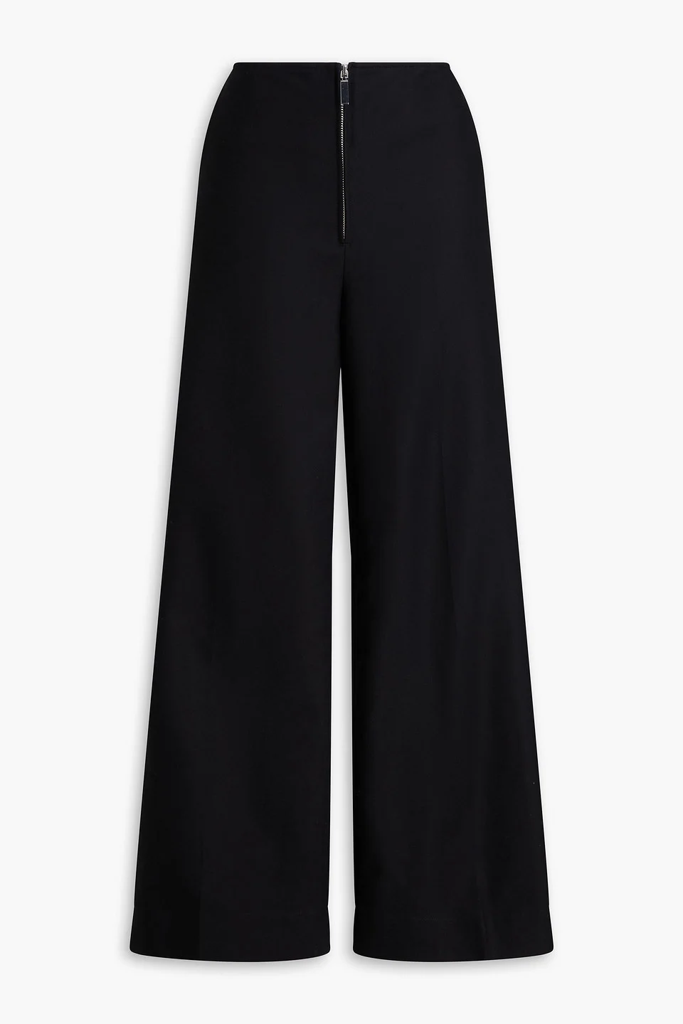 Wide-leg pants cotton-twill pressed creases side slant pockets back welt pockets high-rise cut concealed zip fastening along front mid-weight, non-stretchy fabric dry clean imported 100% Organic Cotton Product Code 46376663163033509