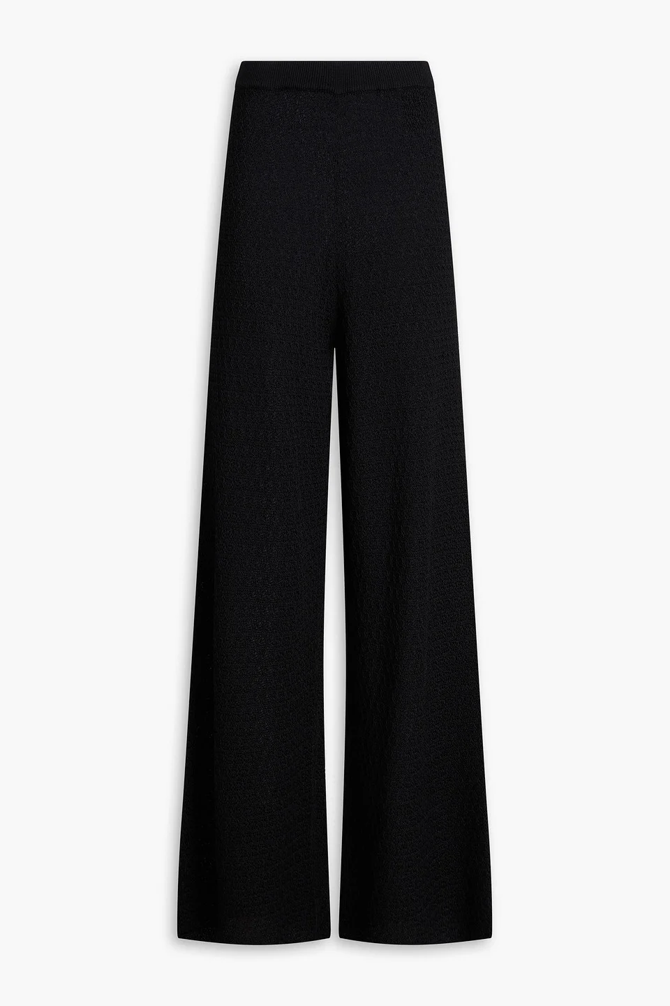Wide-leg pants crochet-knit ribbed trims elasticated waist high-rise cut pull on mid-weight open knit hand wash or dry clean imported 86% Viscose 13% Polyamide 1% Elastane Product Code 46376663163033402
