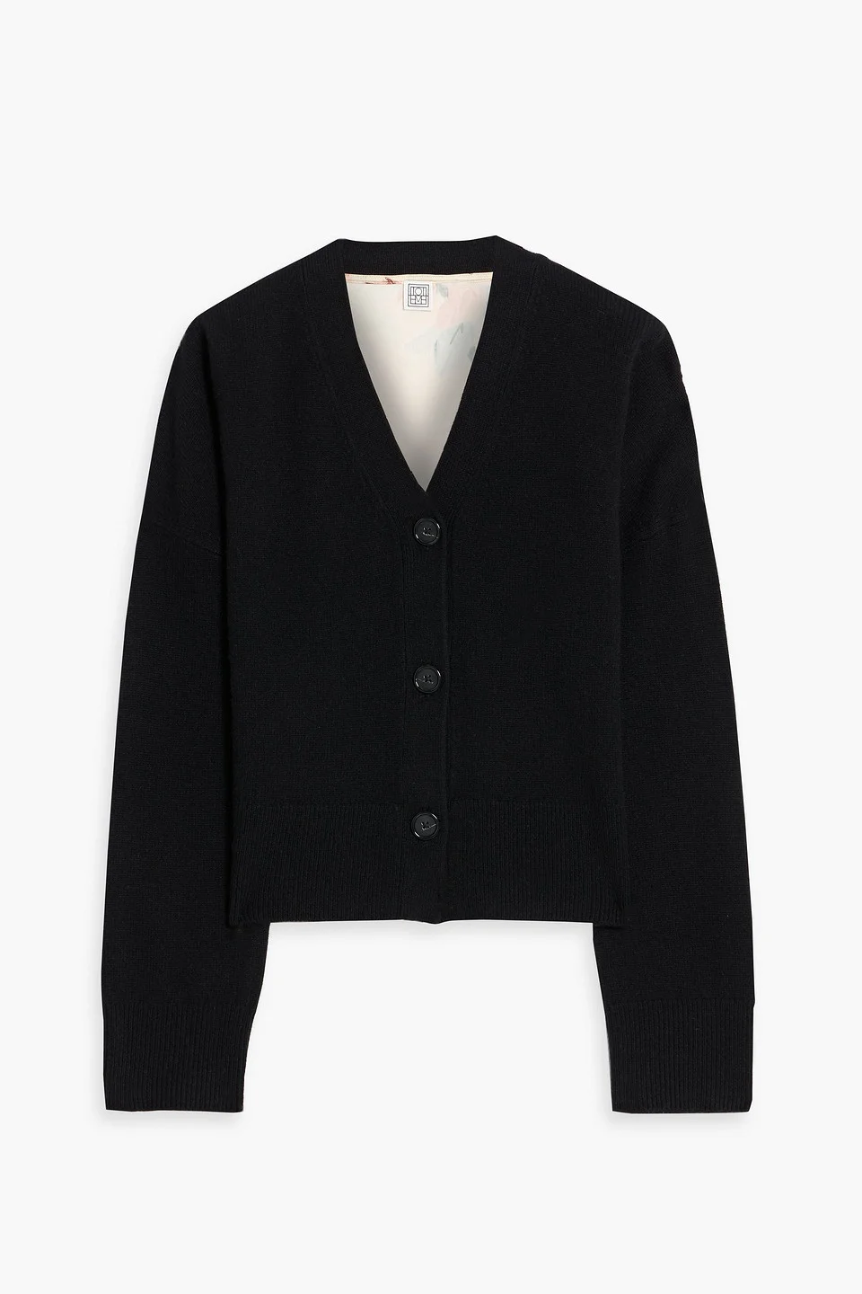 Cardigan floral-print satin cashmere paneled button fastenings through front mid-weight knit dry clean imported 100% Cashmere Product Code 46376663163059555