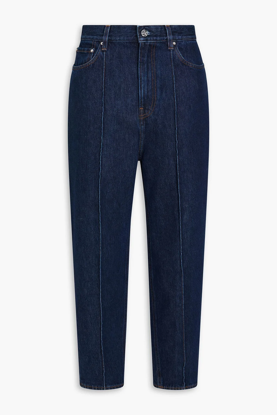 Tapered jeans denim stitched front creases belt loops high-rise cut five pockets button and concealed zip fastening at front mid-weight, non-stretchy fabric machine wash or dry clean made in italy 100% Organic Cotton Product Code 46376663163031526