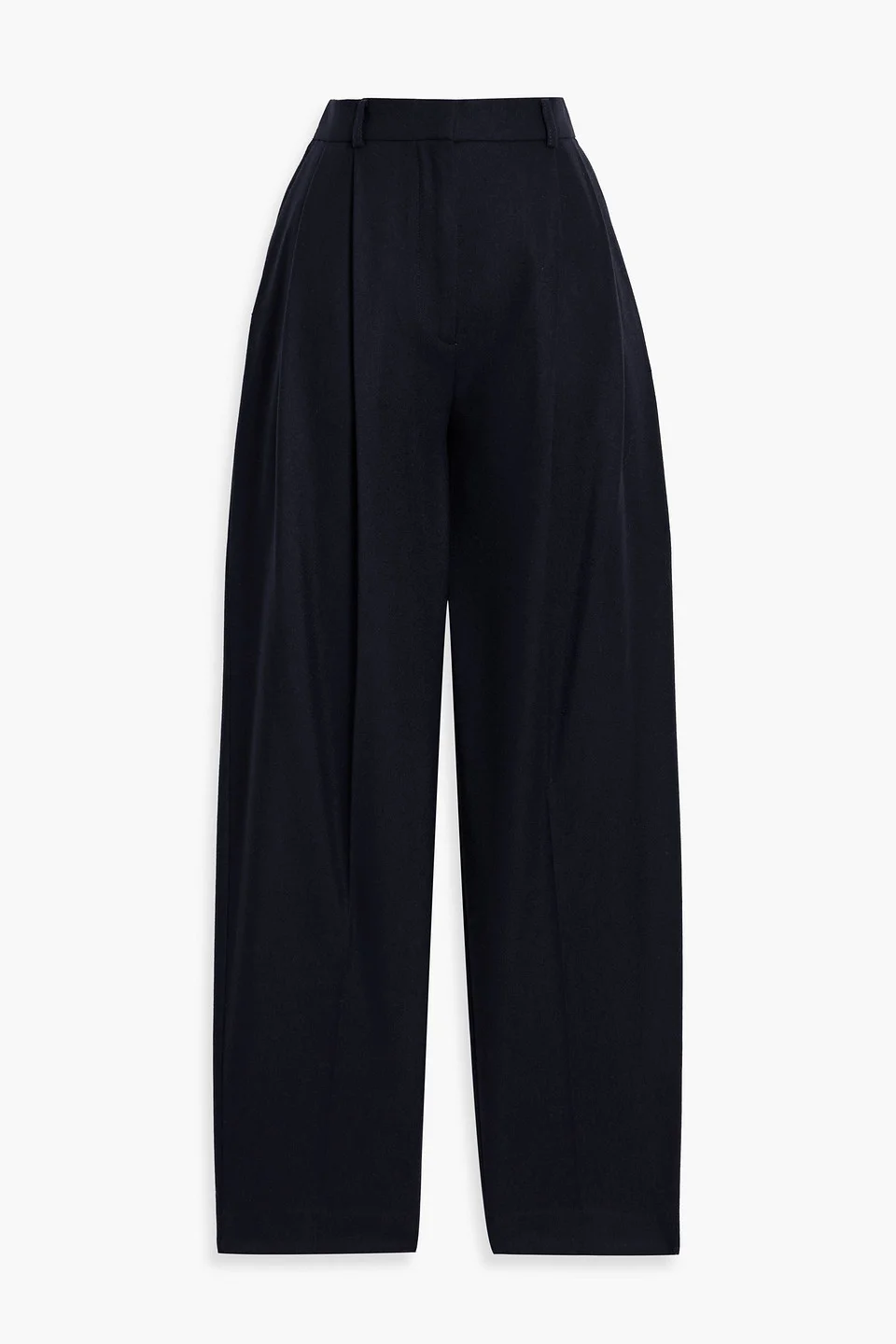 Straight-leg pants wool-blend flannel pleated front slant pockets back welt pockets belt loops high-rise cut mid-weight, non-stretchy fabric dry clean imported 70% Wool 30% Polyamide Product Code 46376663162915681