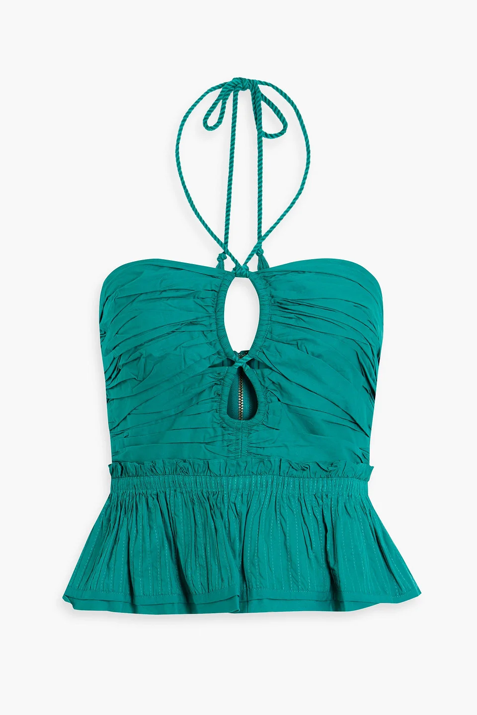 Top cotton pintucked peplum cutout ties at neck concealed hook and zip fastening at back mid-weight, non-stretchy fabric dry clean imported Achieve a monochromatic look with the matching shorts 100% Cotton Product Code 1647597331358042