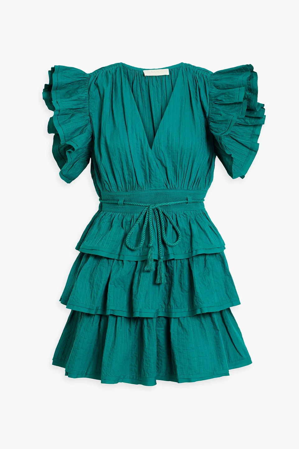Dress cotton-poplin tiered ruffled pintucked detachable waist tie concealed zip fastening along side mid-weight, non-stretchy fabric machine wash imported 100% Cotton Product Code 1647597331540614
