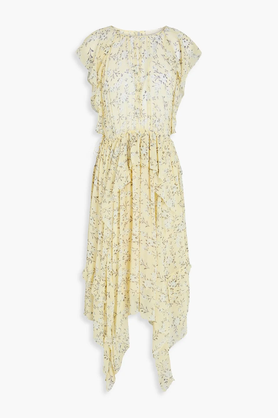 Dress floral-print silk-georgette ruffled elasticated drawstring waist handkerchief hem button-fastening keyhole at back partially lined lightweight, non-stretchy fabric dry clean imported 100% Silk Product Code 46376663162853580