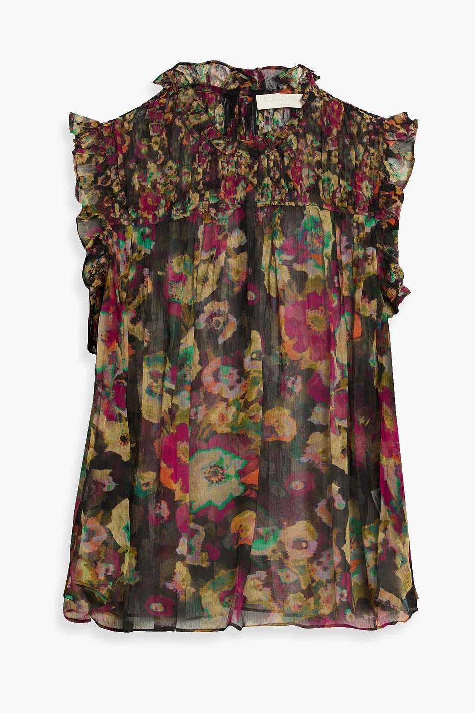 Top printed silk-georgette ruffled button-fastening keyhole at back lightweight, non-stretchy sheer fabric dry clean imported 100% Silk Product Code 46376663162912596