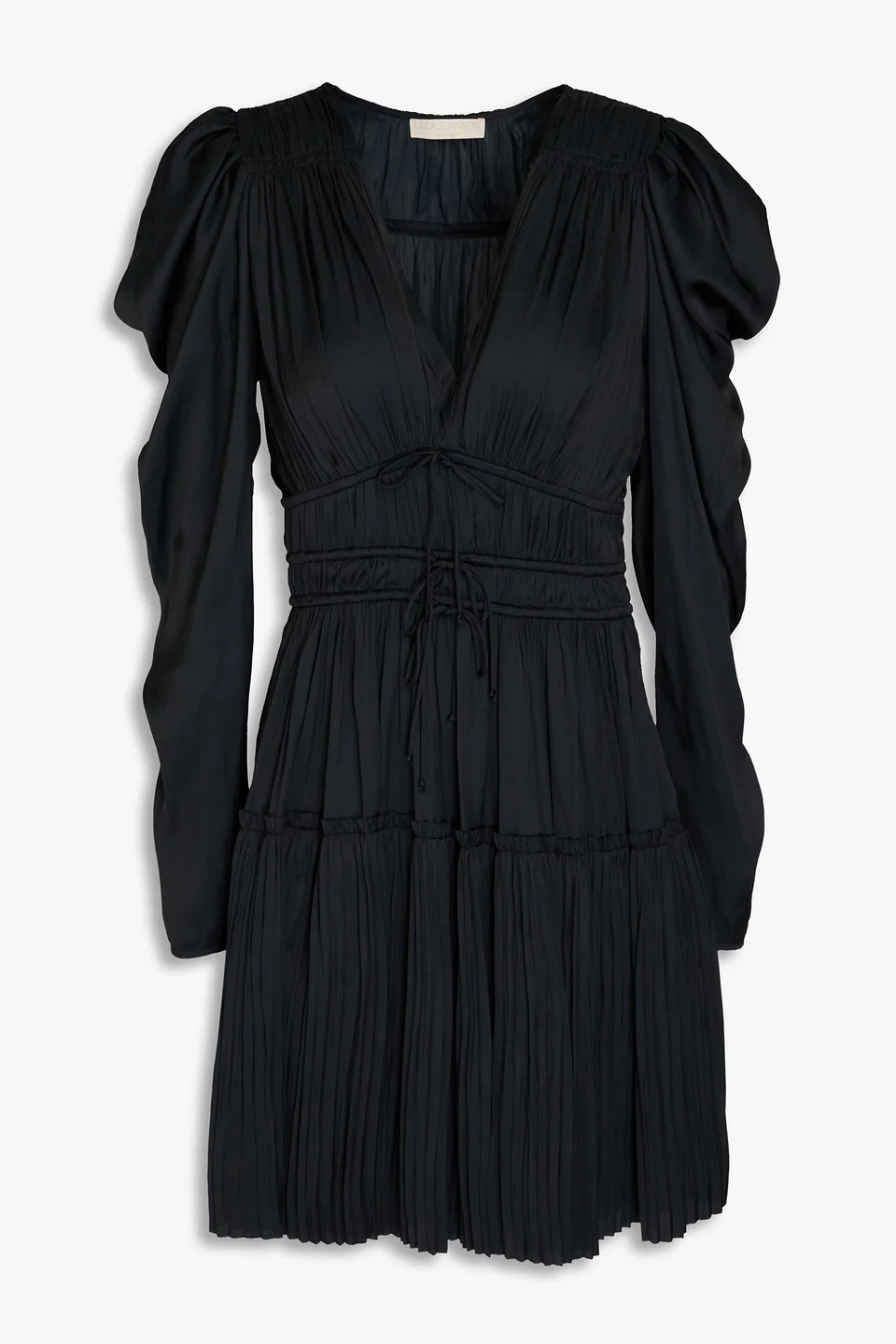 Dress satin bow-detailed pleated gathered concealed zip fastening along side lightweight, non-stretchy fabric dry clean imported 100% Polyester Product Code 1647597356649751