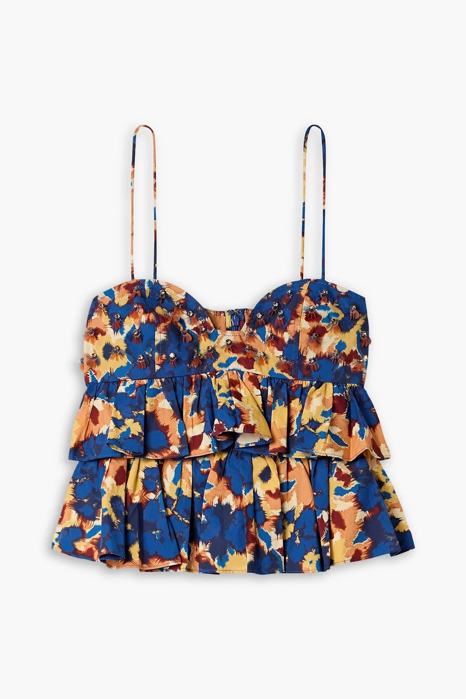 Lucia ruffled embellished printed cotton-poplin top