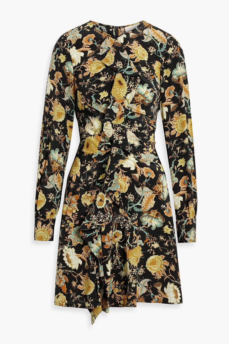Dress floral-print silk-crepe ruffled buttoned cuffs concealed hook and zip fastening at back mid-weight, non-stretchy fabric dry clean imported 100% Silk Product Code 46376663162912605